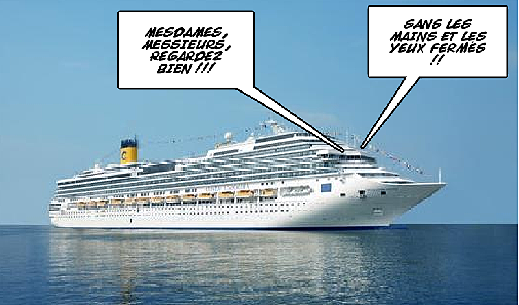 Ta première photo, Pierre, c'est un montage ou quoi ? On dirait que le paquebot est devant l'entrée d'un port, on voit des gens sur une jetée ? J'avais cru comprendre qu'il s'est échoué "sur un banc de sable" ?