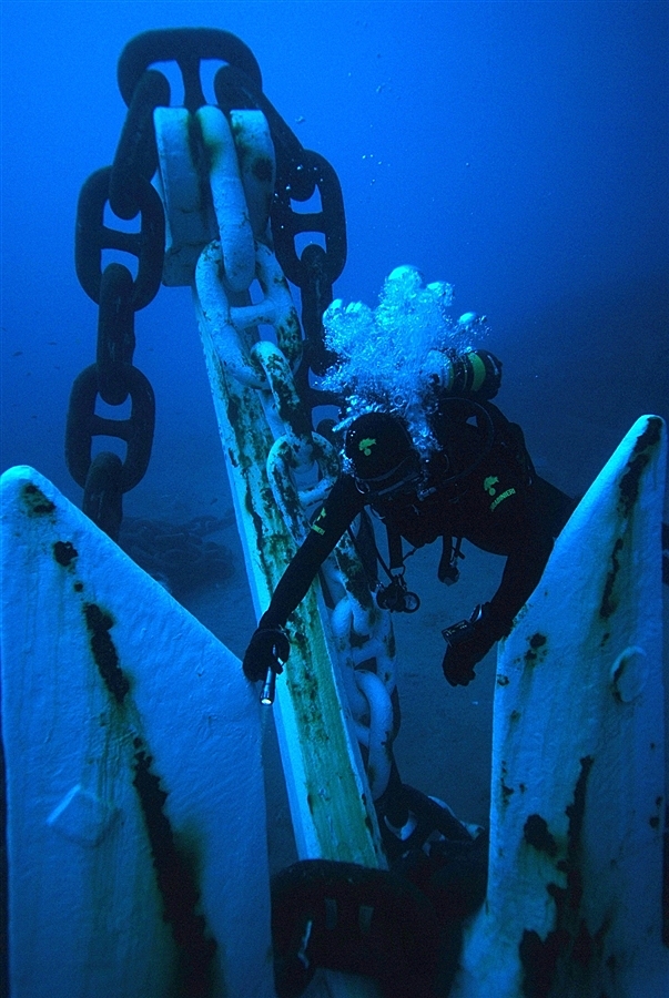 Il pense à mouiller demande la profondeur et on lui dit "il y a cent mètres de fond" donc repond vérifions si on peut y arriver avec les chaînes, puis "on va dériver doucement et se poser sur la côte"