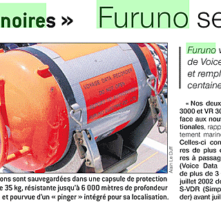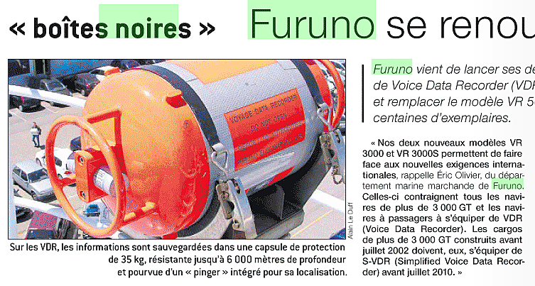 (Et VDR ne signifie pas Voice Data Recorder comme je l'ai écrit plus haut mais Voyage Data Recorder)