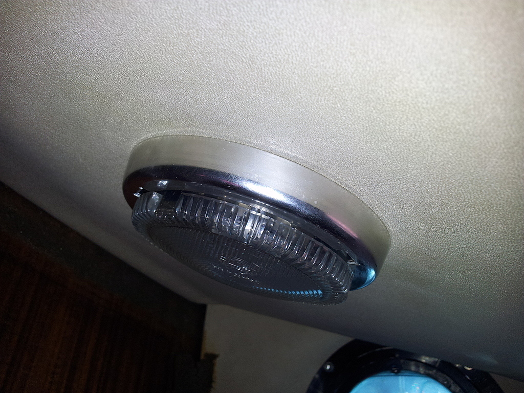 Comme dit Margotte : appuyer en tournant (ou tourner en appuyant...). J'ai les mêmes; ça fait un peu "autobus" d'autrefois. A remplacer pour la saison prochaine par des leds, parce qu'avec des navettes 10W dedans il vaut mieux naviguer au ponton branché sur le 220...