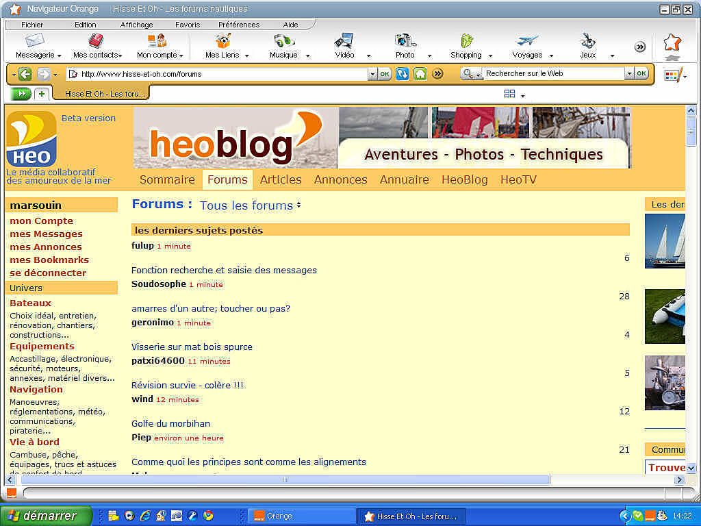 Peux-tu mettre une copie d'écran de la première page d'un forum, par ex la page d'accueil du forum "équipements" ?