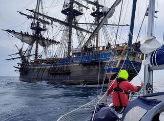 La seule autre réplique d'un bateau de cette époque qui navigue en Europe a ses coûts opérationnels entièrement assumés par un seul groupe industriel.
