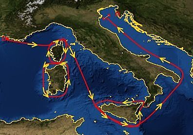 1-dessinez un huit autour de la corse et de la sardaigne dans le sens que vous voulez