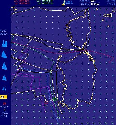 Thais est repassé devant avant le Cap Corse, mais il semble qu'il ait eu du mal a affaler le spi !!??