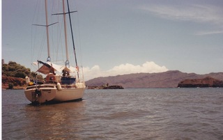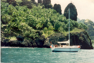 Fatu-Hiva le 06/03/95, peinard, on était deux bateaux.