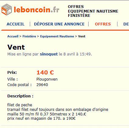 copies d'écran avant que l'annonce soit désactivée.