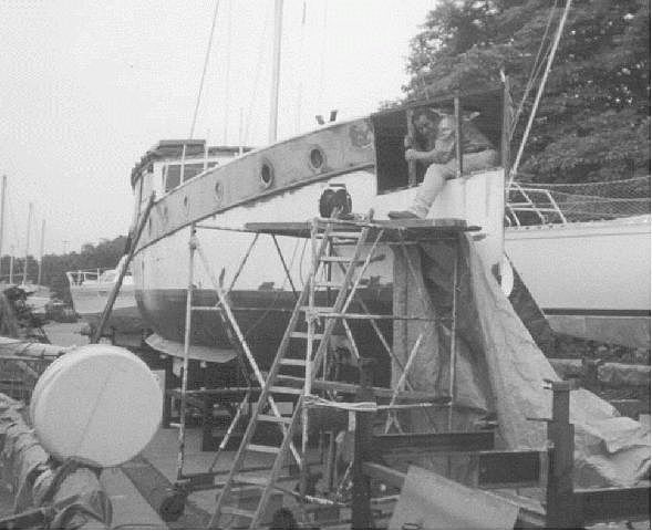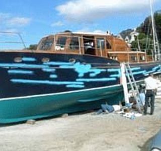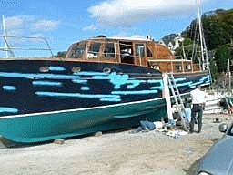 Une mise à l'eau d'1/2h, un étambot qui cache un bordé pourri, le b..l pour essayer d'enlever l'arbre, quelques ouvriers au fond du port...