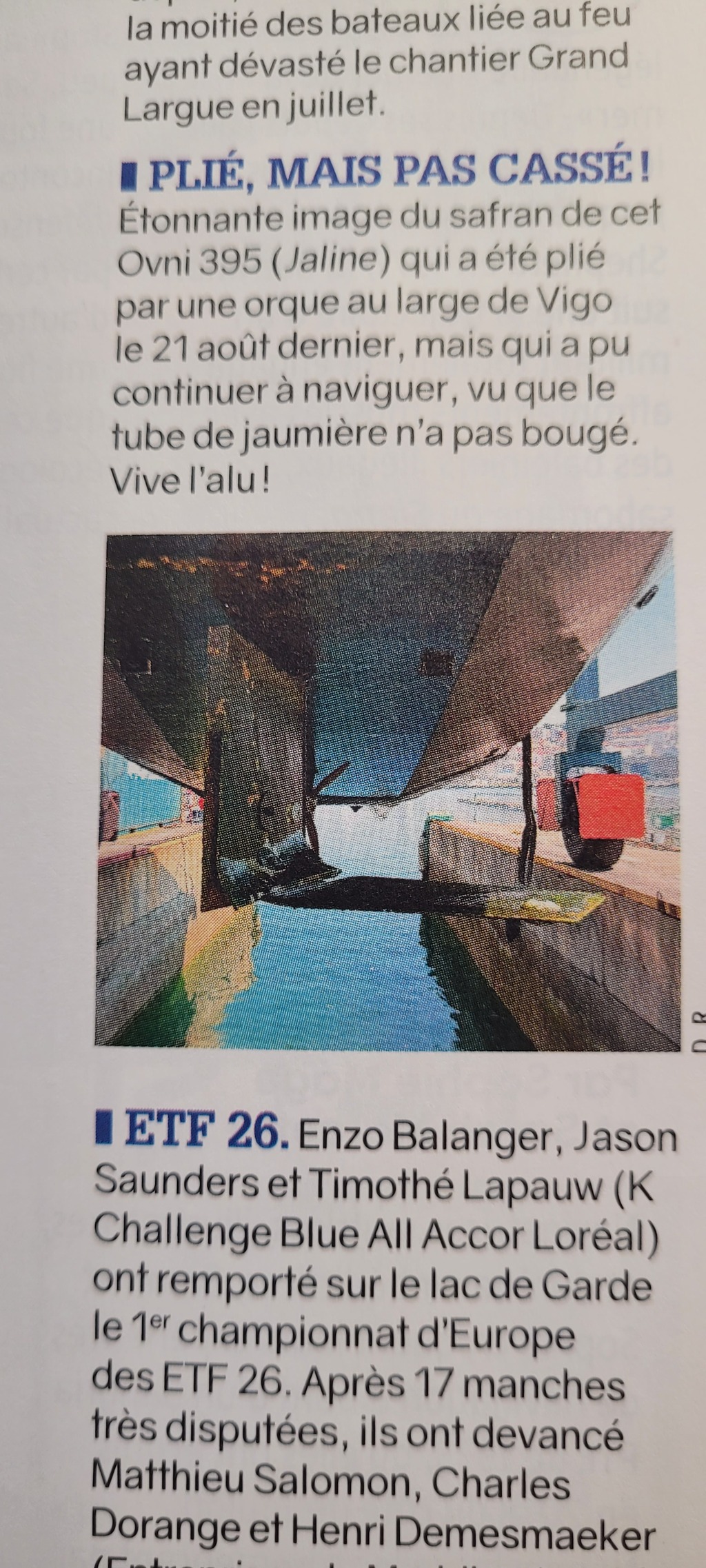 ric, y'a bien des bateaux ou l'échantillonnage/renforts est clairement sous dimensionné, Le safran doit pouvoir casser/plier sans que le bateau sombre.