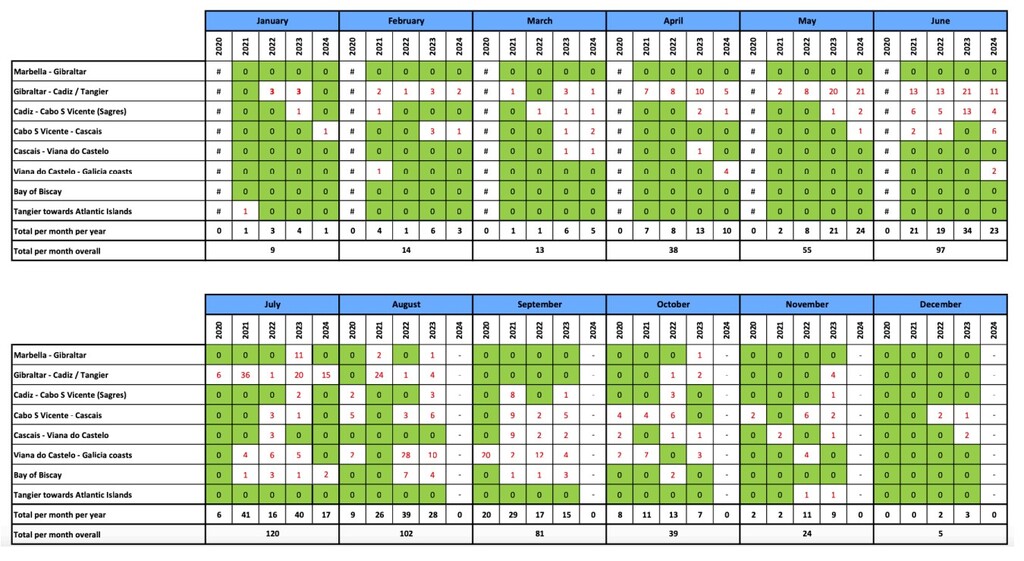 Quand on regarde les lieux des interactions avec les orques, du moins sur l’application GT ORCA, il semble que la grande majorité se passe dans la bande des 50 miles des côtes. Il suffirait donc de s’éloigner des côtes pour minimiser le risque ?