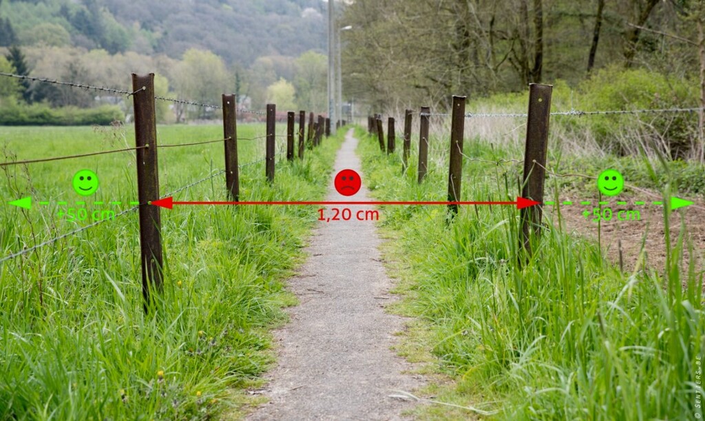 Selon l'article 647 du Code civil, il est interdit d'installer des ouvrages qui causent un dommage à autrui. Ainsi, les fils barbelés doivent être installés avec soin pour éviter de blesser les personnes ou les animaux (à l'appréciation du verbalisant: en hauteur ET en retrait, généralement de 0,50m (?), avec signalisation). De plus, l'article 670 impose une distance minimale entre les plantations (naturelles et artificielles) et la limite de la propriété voisine, selon les usages locaux. En milieu rural ou urbain.