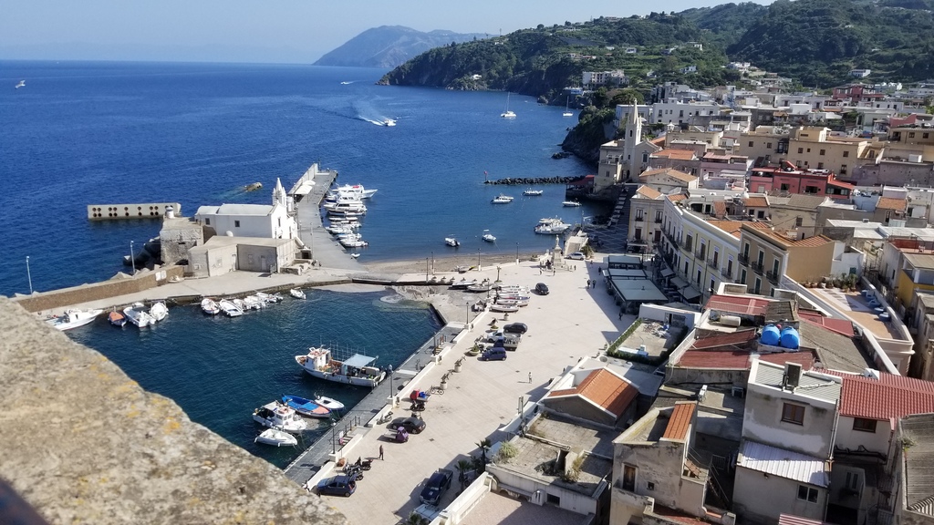 Après ces moments un peu durs, la balade a été très facile et agréable : mouillage au port de Filicudi, qui donne vraiment l’impression d’être au bout du monde en cette saison et visite d’un village préhistorique. Puis mouillage devant Salina qui a énormément de charme et très peu de touristes en cette saison. Puis Lipari avec son port (sympa mais cher, on est en Italie), ses glaces dans des brioches et ses monuments superbes. En arrivant, nous voyons des détritus blancs flotter sur l’eau, on râle contre la pollution, avant de s’apercevoir qu’il s’agit de pierre ponce qui viennent de la carrière voisine.