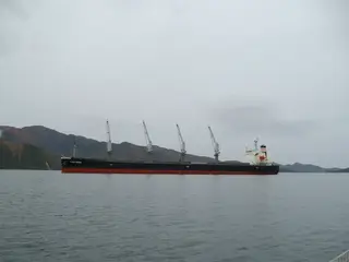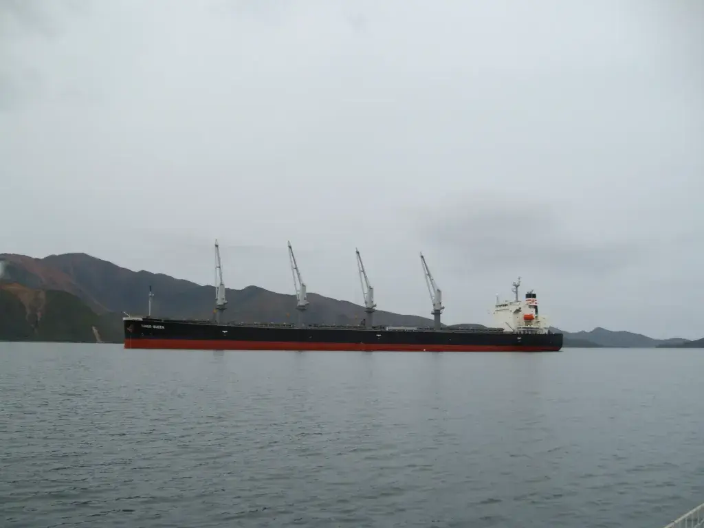 Il me fallu encore une bonne heure de route pour atteindre Nakety, toujours guidé par le flash lumineux, à travers le brouillard qui descendait des montagnes et glissait sur le lagon autour de moi. Quand la brume se déchira et que l’entrée de l’anse m’apparut, le flash s’éteignit et je découvris d’où il venait : c'était un minéralier à l’ancre dans les eaux apaisées de la baie. Je lançais le HB puis montais sur le pont pour affaler. Mes voiles étaient serrées et mon ancre prête à mouiller lorsque je passais devant l’énorme minéralier, dont je lus le nom : Tango Queen. Je montais alors sur le roof et me tenant au mât, je saluais longuement de la main le marin en veille sur sa passerelle. Il avait dû me repérer sur son radar devant la passe et m’avait guidé jusqu’à l’entrée de la baie.